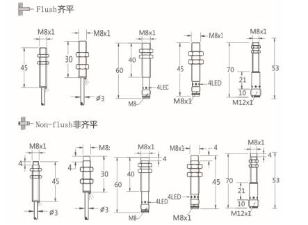 Thread size / 螺紋尺寸: M8屏蔽式 / M8非屏蔽式